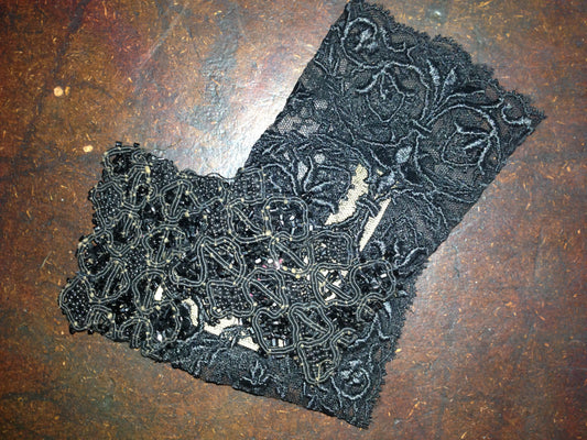 Black Embroidered ribbon with beaded