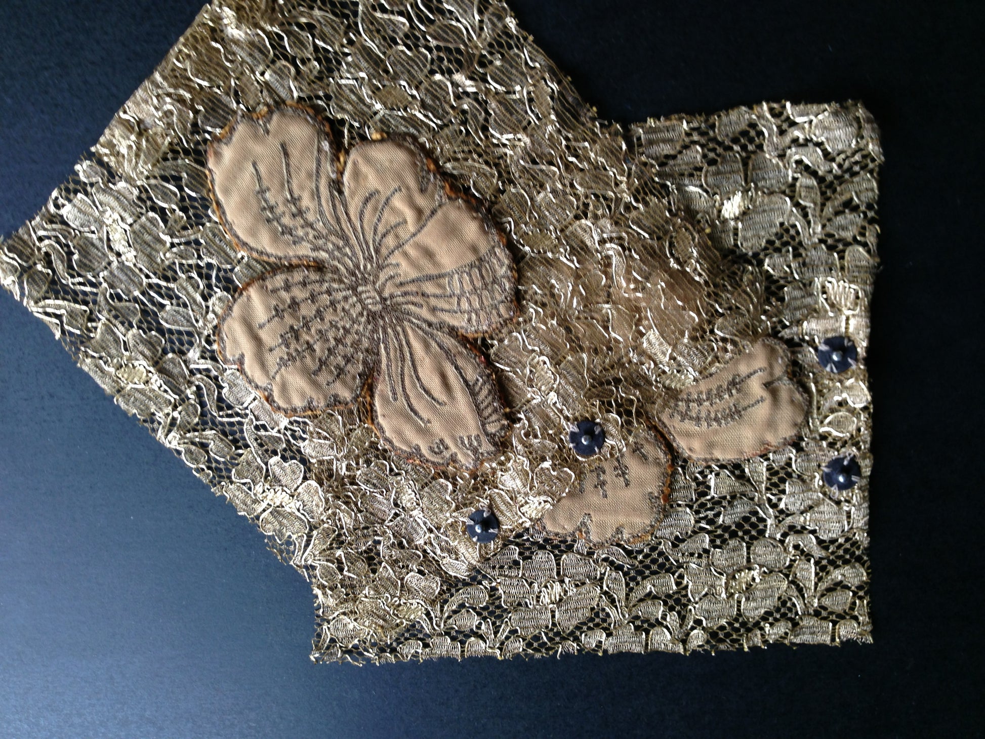 Gold Lace w/gold embroidery and flowers: Pair Width/L: 8"