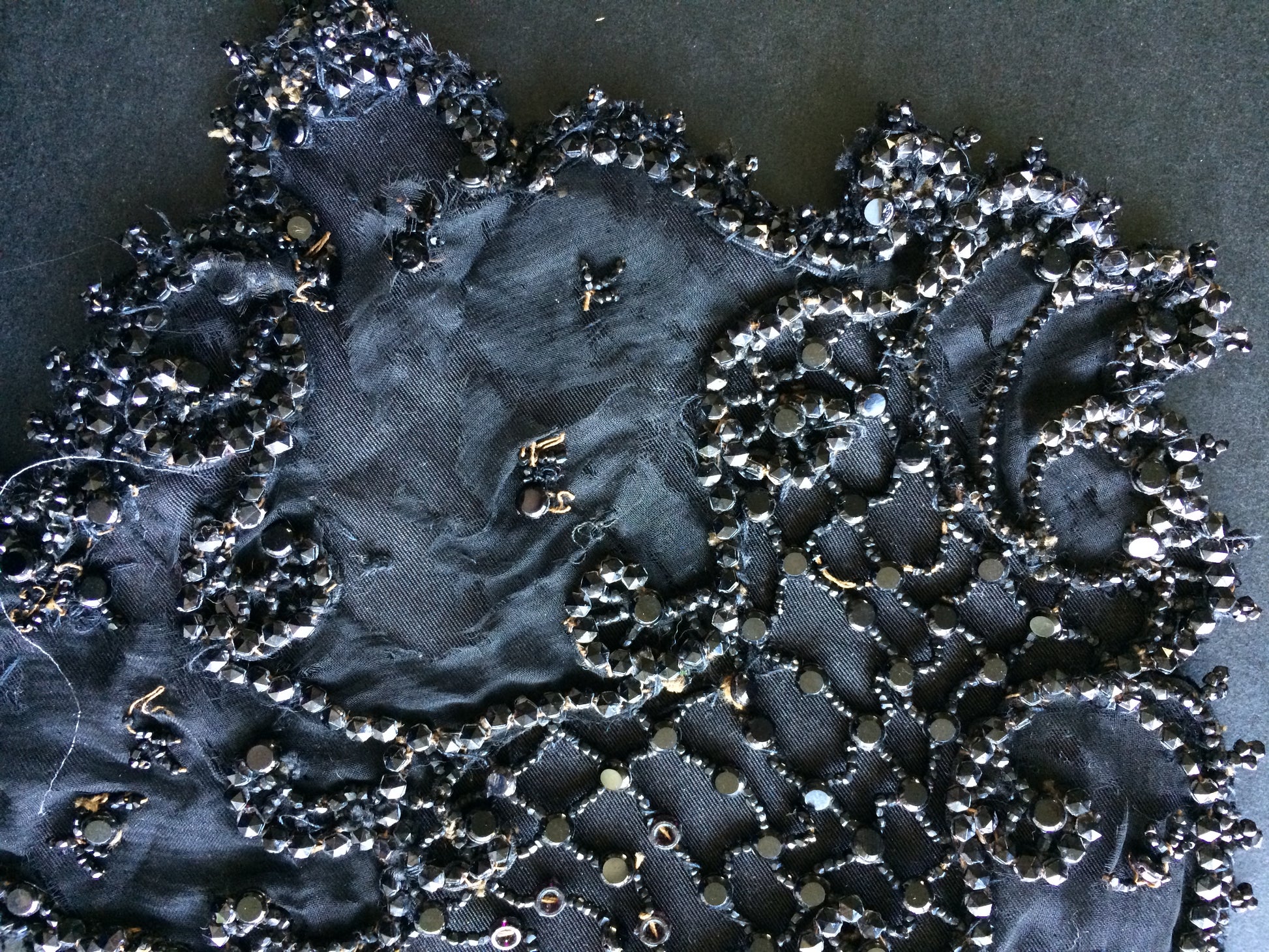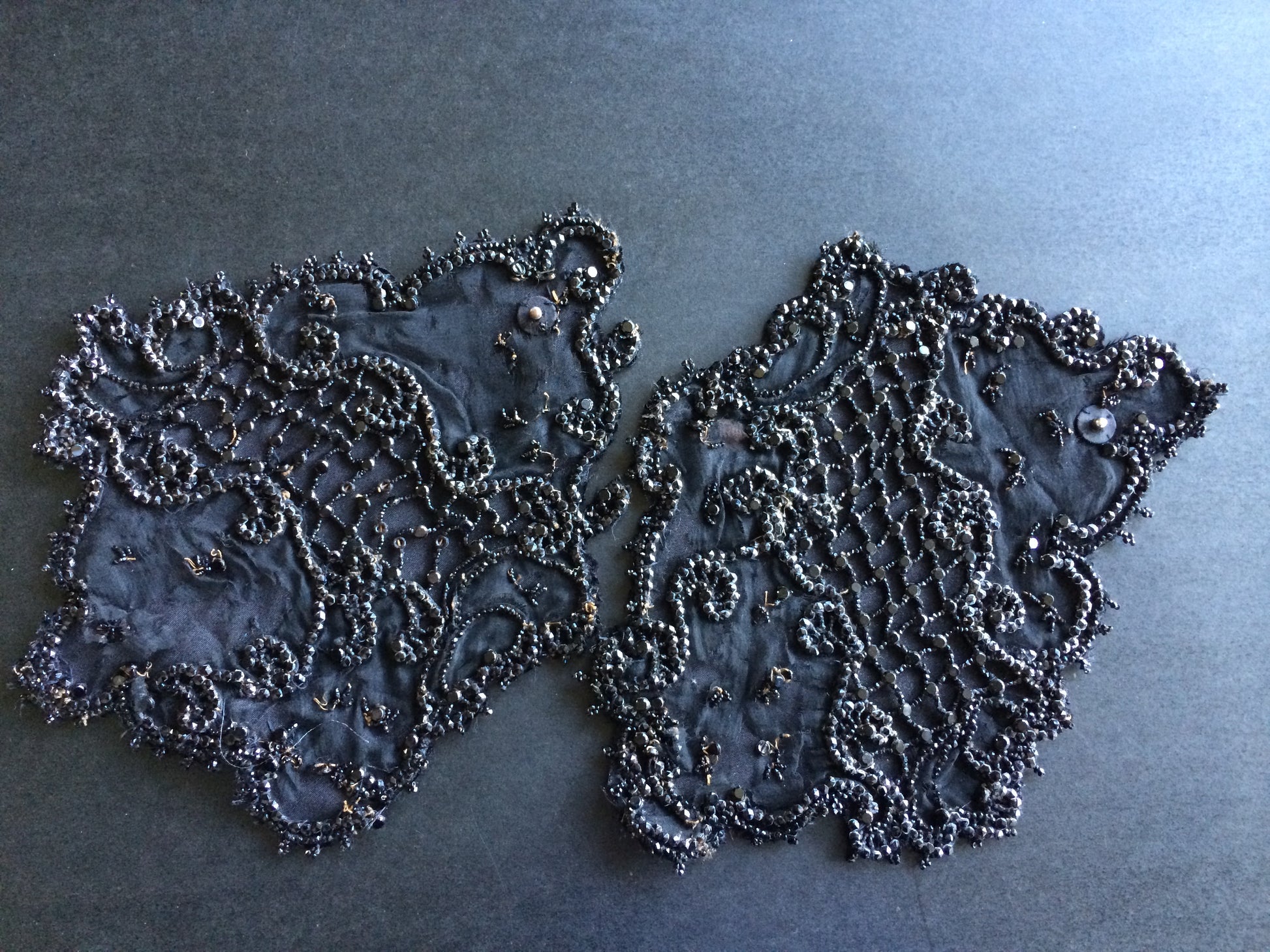 Black faille with beading in shape of applique : Pair Width/L: 5 1/4"