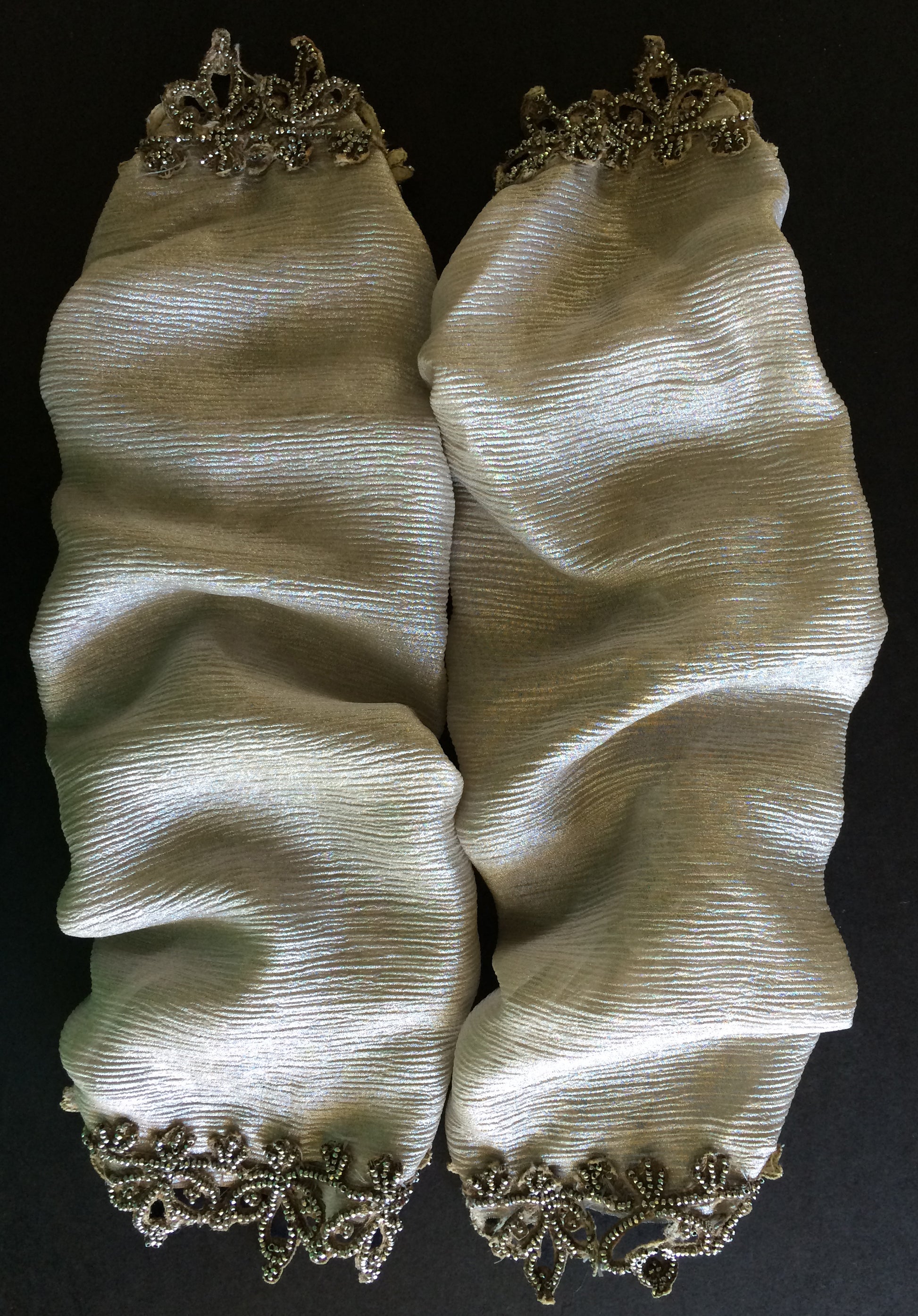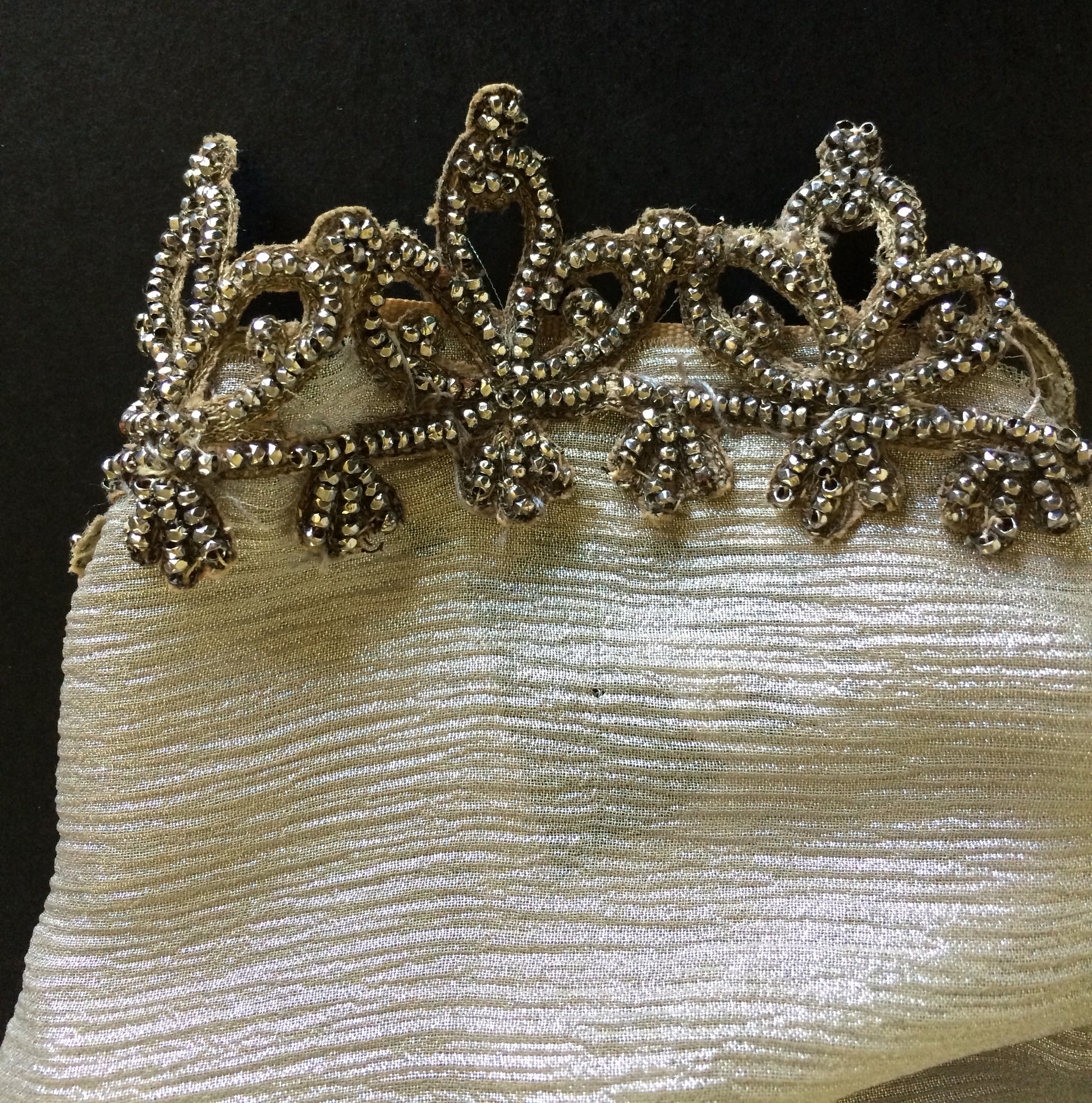 Grey silk Plisse fabric with silver beading on edges : Pair Width/L: 13"