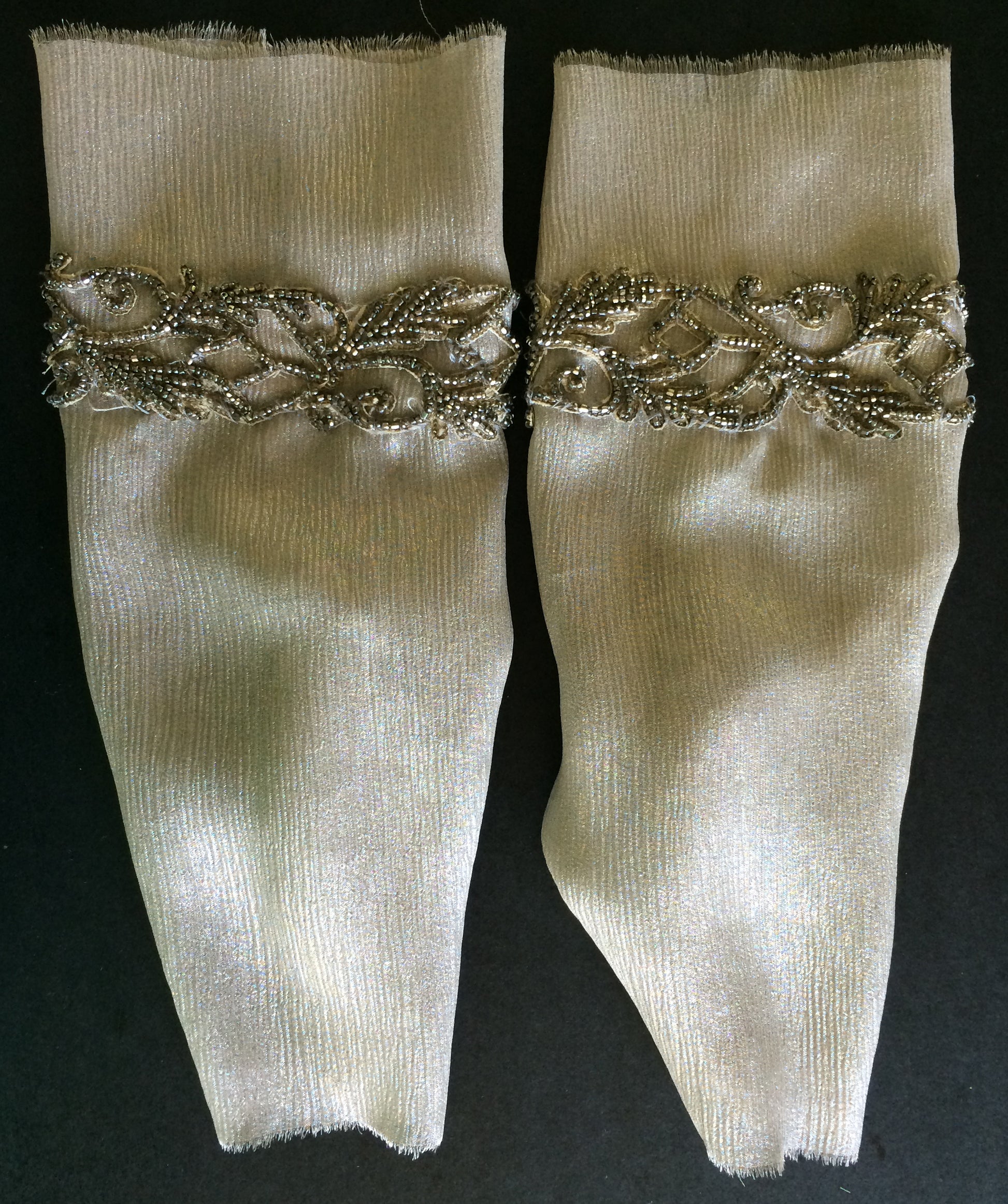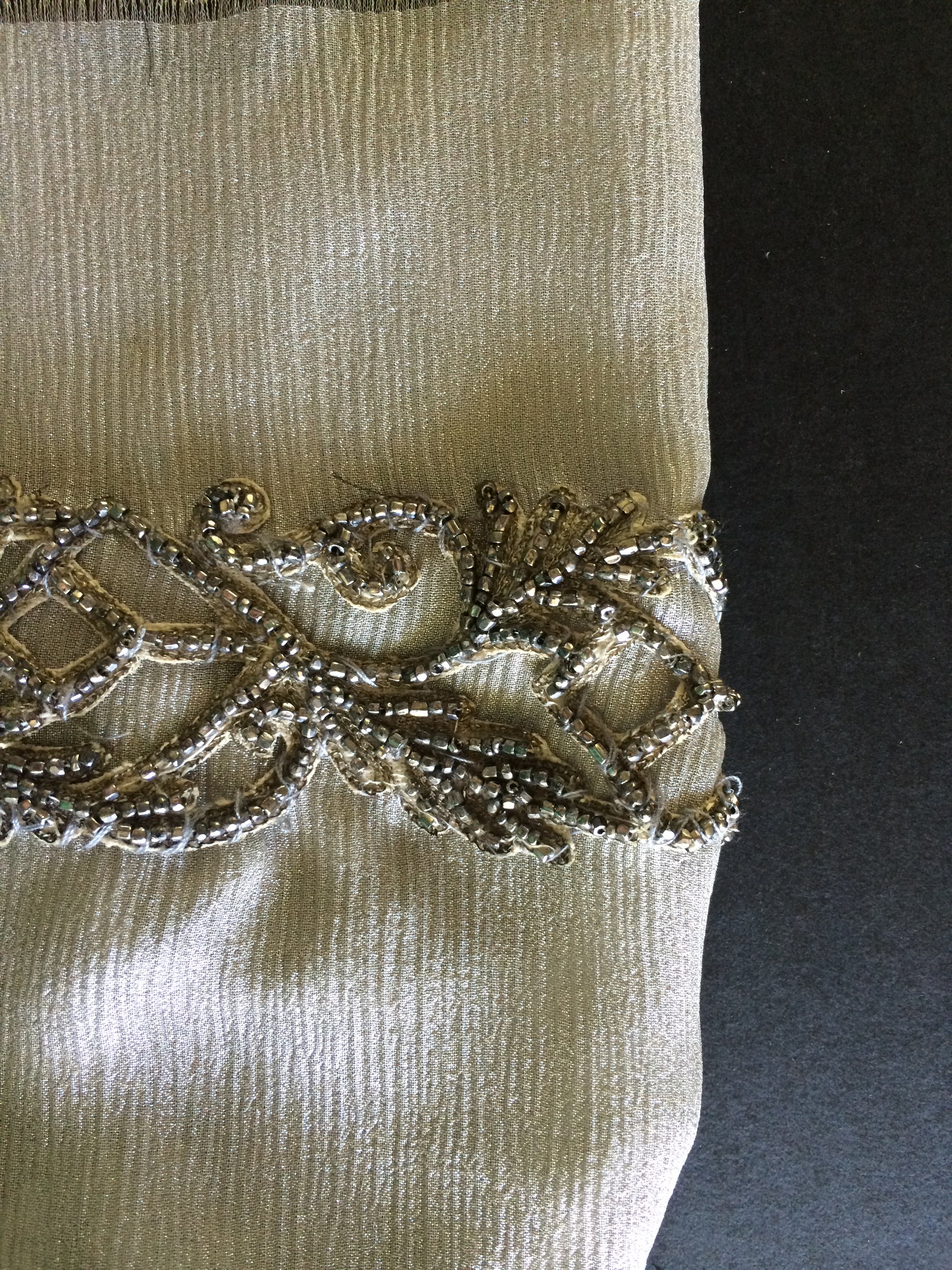 Grey silk Plisse fabric with silver beading : Pair Width/L: 9"